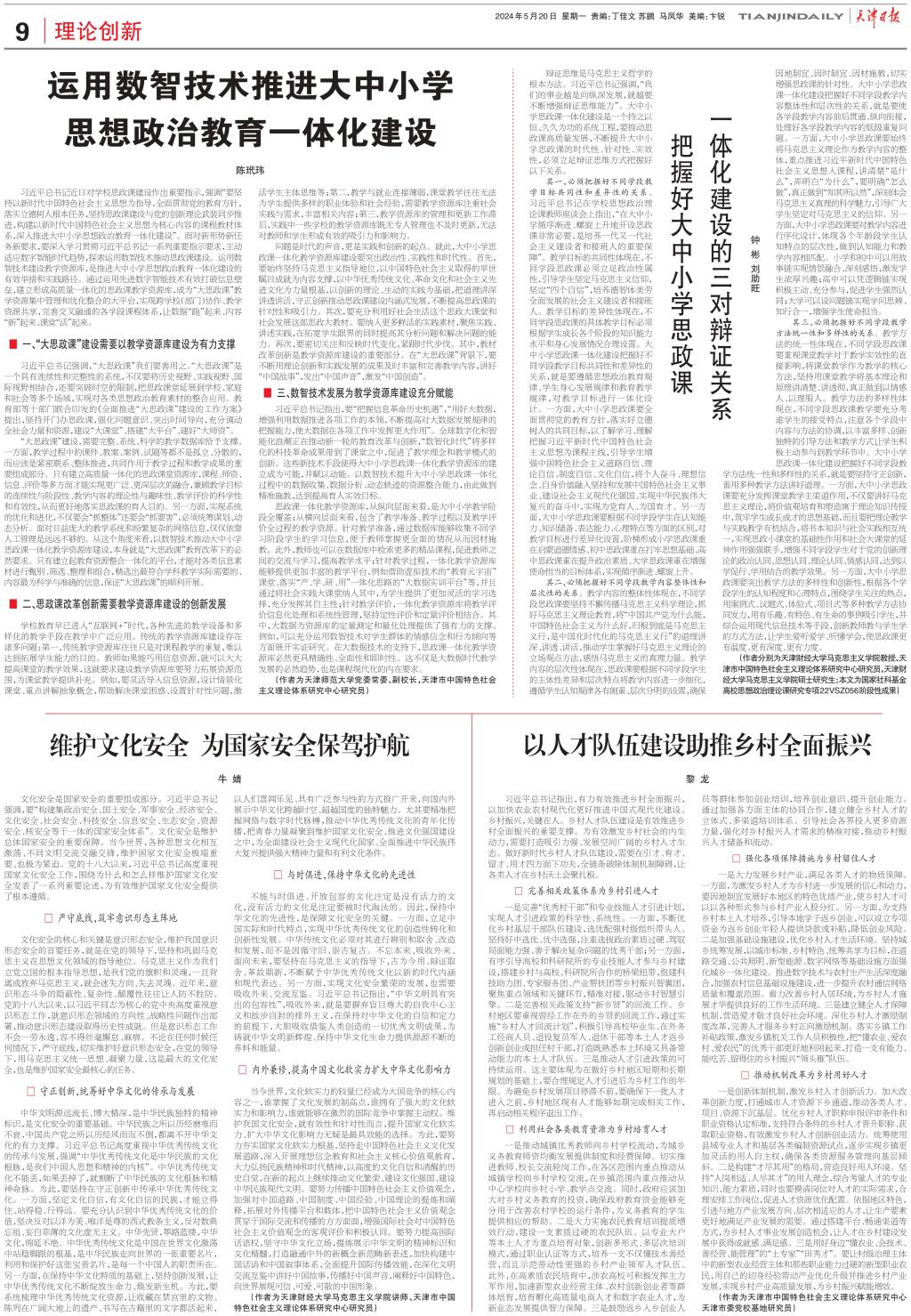 天津日报 | 运用数智技术推进大中小学思想政治教育一体化建设