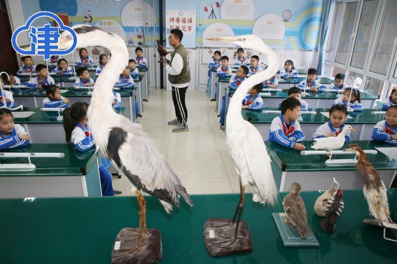 志愿者通过环颈雉、红腹锦鸡、白鹭、鹦鹉等鸟类活体、标本、图片等丰富的形式,介绍鸟类的特征、生活习惯、候鸟迁徙线路等,向孩子们普及保护鸟类的重要性。