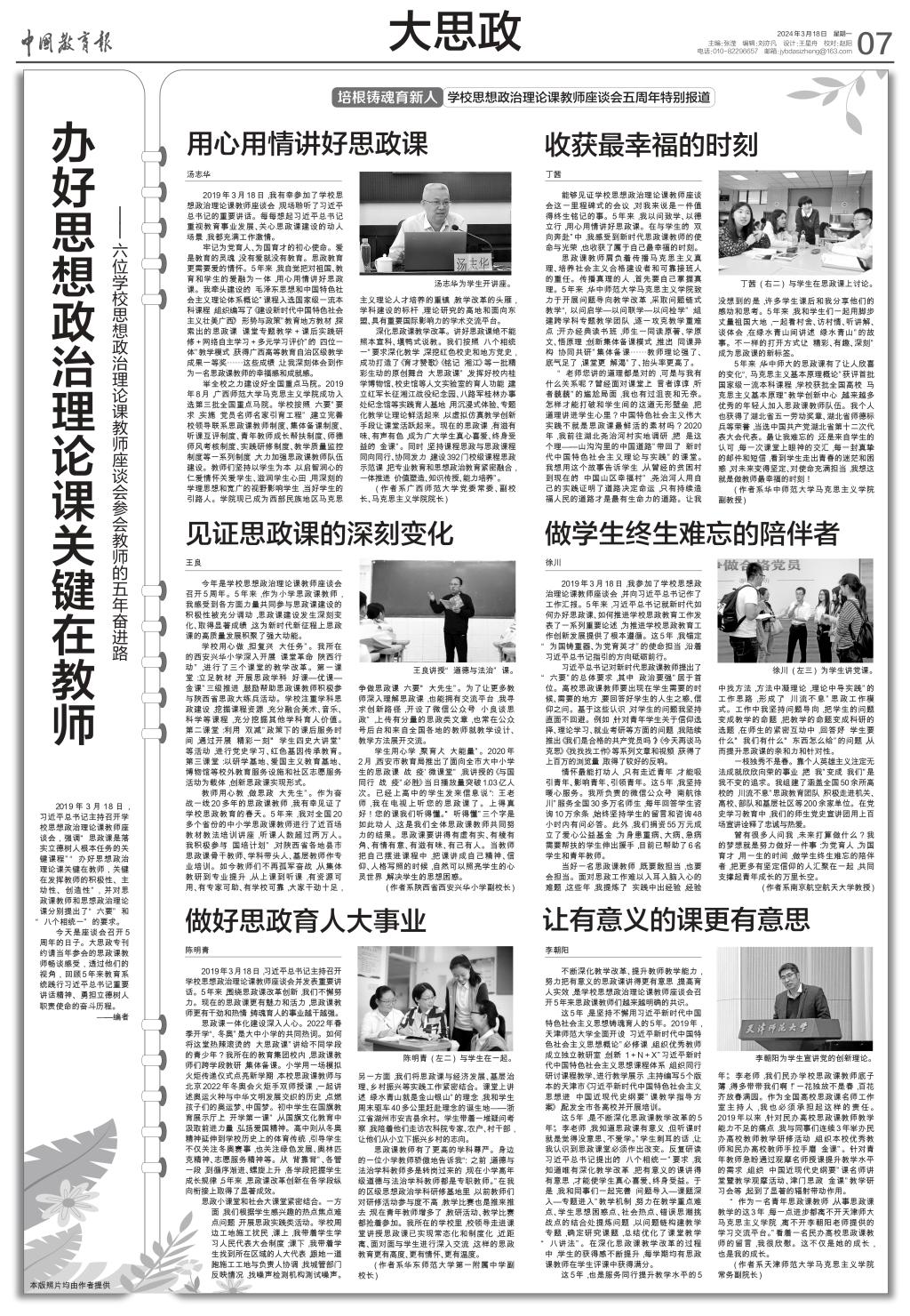 今天是座谈会召开5周年的日子。大思政专刊约请当年参会的思政课教师畅谈感受,透过他们的视角,回顾5年来教育系统践行习近平总书记重要讲话精神、勇担立德树人职责使命的奋斗历程。 ——编者