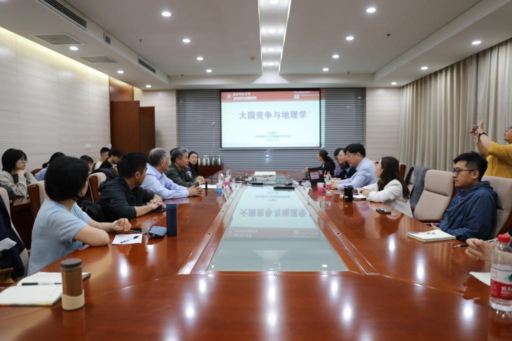 本站讯(通讯员 陈洁)5月8日上午,华东师范大学地球科学学部主任杜德斌教授应邀到我校地理学部开展学术交流并作题为“大国竞争与地理学”的学术报告。报告会由地理学部党委书记苏睿先主持,孟广文教授致欢迎辞,来自地理学部的四十余名师生参加了本次报告会。