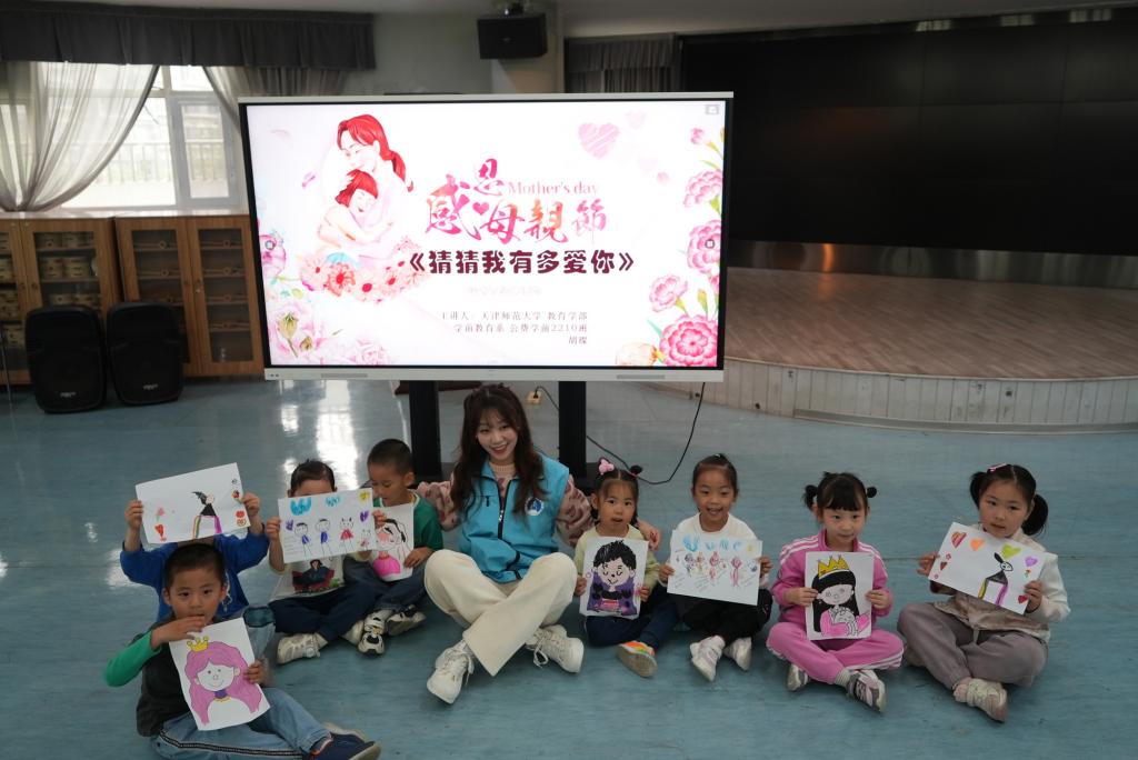 在河西区第十六幼儿园、和平区第九幼儿园的教室里,《猜猜我有多爱你》的温情故事在师范生“故事魔法师”的讲述中流淌。幼儿们通过角色扮演模仿小兔子表达爱意,用彩纸创作“彩虹花”“我的妈妈”手工作品,将亲情教育融入童趣课堂。“这样的阅读实践让教育有了温度。”幼儿园教师反馈道。