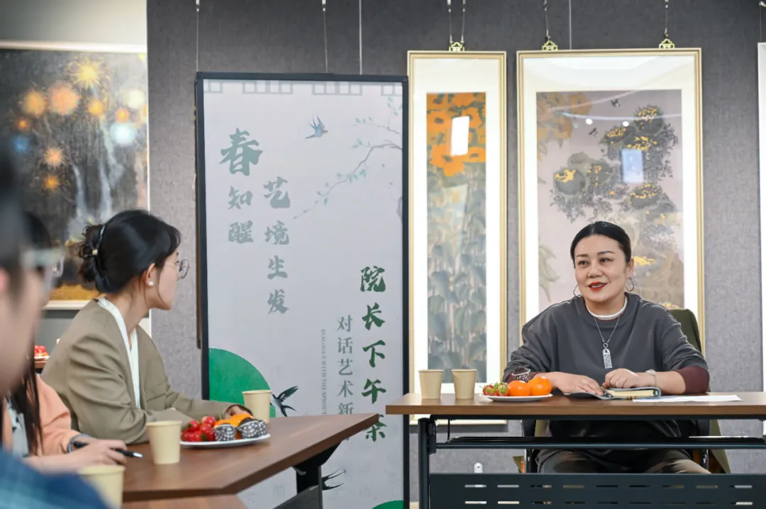 本站讯(通讯员 史冬梅)“艺韵芳菲处,师生论道时”。4月16日下午,一场氤氲着艺术气息的“春知醒,艺境生发”院长下午茶活动在0033990威尼斯知醒美术馆举行。在丹青水墨与浓烈油彩相映成趣的美术馆里,美术与设计学院院长要彬教授与10位学生代表围坐畅谈,围绕“艺术教育的价值重构”“学业发展的多维路径”“优良学风的涵养建设”“校园生活的品质提升”等议题展开深度对话。
