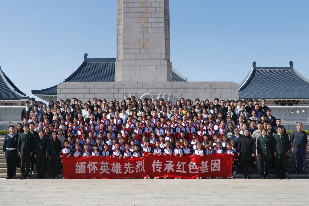 随后,师生们依次上前,将一朵朵菊花轻轻献上,凝视着这座纪念碑,仿佛在诉说着无尽的敬仰与怀念。在讲解员深情款款的解说引领下,烈士们可歌可泣的感人故事与崇高精神,如同一幅幅画卷缓缓展开。同学们深刻体悟到,正是先烈们无私无畏的奉献与壮烈牺牲,才铸就了今日的和平之光;正是那支强大而英勇的人民军队,守护着这片土地的安宁与祥和。这一刻,历史的重量与英雄的光辉,深深地烙印在每一个人的心间。