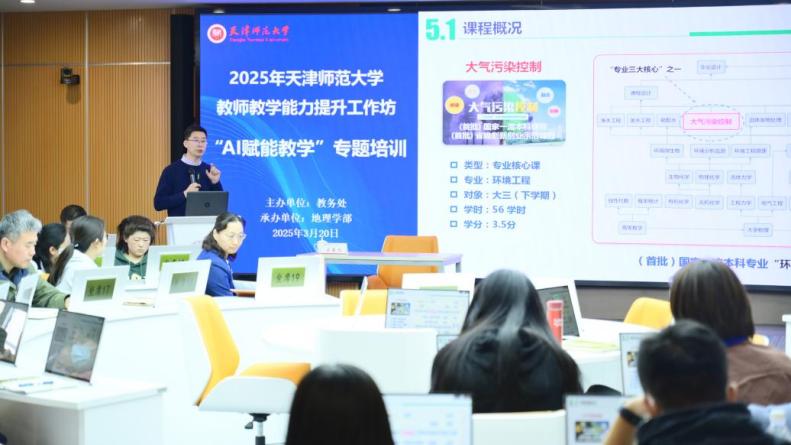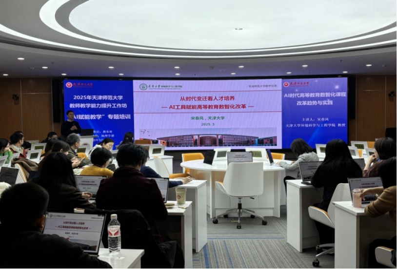 本站讯(通讯员 李倩 纪亚宁)为进一步深化教育教学改革,全面提升我校教师的教学能力和专业素养,3月20日下午,学校举办教师教学能力提升工作坊“AI赋能教学”专题培训(第三期)暨教师教学创新大赛专题指导。全国教师教学创新大赛一等奖获得者,天津大学环境科学与工程学院副院长宋春风教授受邀作专题报告并开展教学创新大赛专题指导。各学部、学院教师代表百余人现场参训。