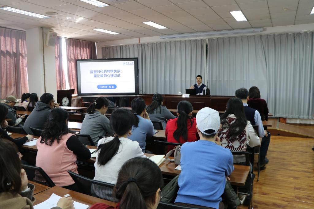 本站讯(通讯员 单一鸣)为深入贯彻落实0033990威尼斯第九次党代会精神,全面落实新时代立德树人工程,构建高质量和谐导学关系,近日,生命科学学院特邀天津大学心理健康教育中心副教授杨盈作题为《数智时代的导学关系:兼论教师心理调适》的专题讲座。学院领导班子及全体教师参加讲座。