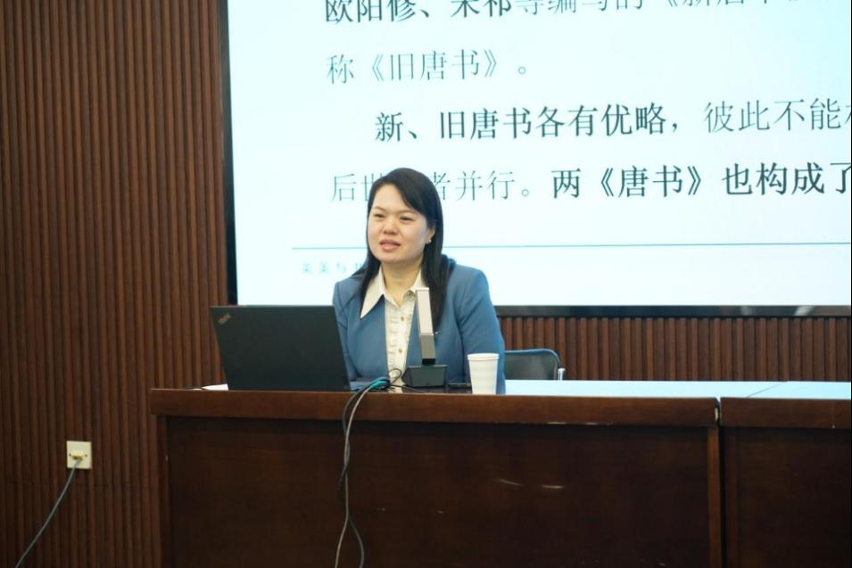 蒋爱花以“李唐建国——太原首谋”“玄武门之变——对李建成的塑造”“武则天的形象塑造”“杨贵妃的爱情故事”等历史事件切入,结合新旧《唐书》的编纂背景及理念,重新审视相关历史问题,为同学们提供了史料解读与史事分析的精辟思路。蒋爱花表示新、旧《唐书》中不同历史书写的差异不仅源于编纂者的史学理念,更折射出五代与北宋截然不同的政治文化背景。《旧唐书》在“纂修须按于旧章”的编纂理念下,记载更加翔实;《新唐书》以“文约事丰”为宗旨,运用“春秋笔法”,但也存在“多采小说而不精择”的不足。蒋爱花还以李建成墓志、上官婉儿墓志为例,提出在运用史料时要注意考辨,传世文献、出土材料中历史叙事的差异并非简单的“优劣”问题,应关注书写背后的权力干预与话语竞争。