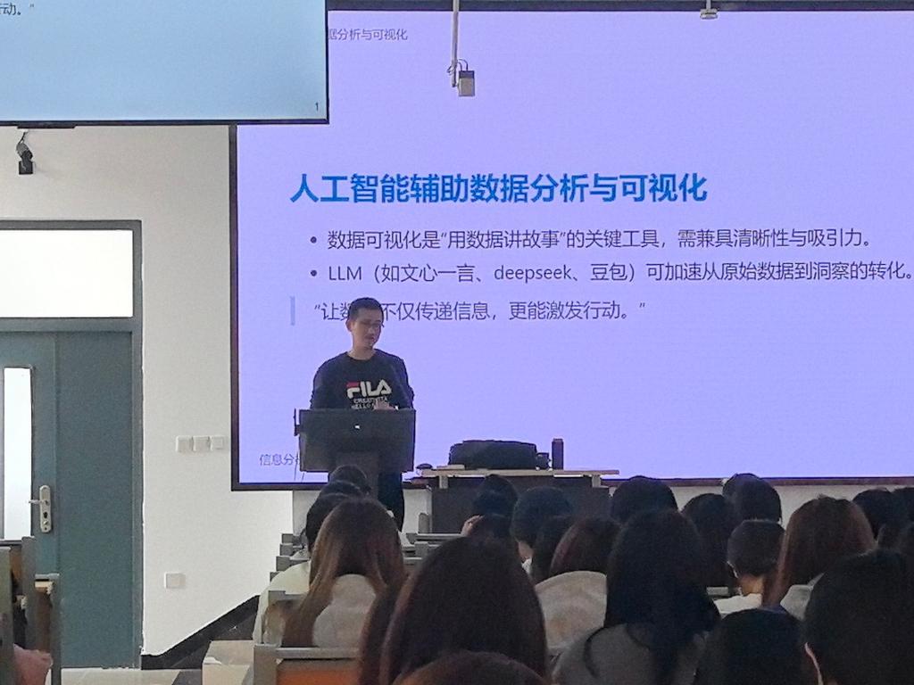 本站讯(通讯员 时晟蓉)3月10日,管理学院面向2024级本科生开展“AI赋能数据素养”专题教学。本次教学以“人工智能技术驱动教学变革”为核心目标,聚焦大语言模型在数据分析与可视化中的实践应用,通过“理论+实操+创新”的立体化教学模式,推动学生数字素养与创新能力全面提升。