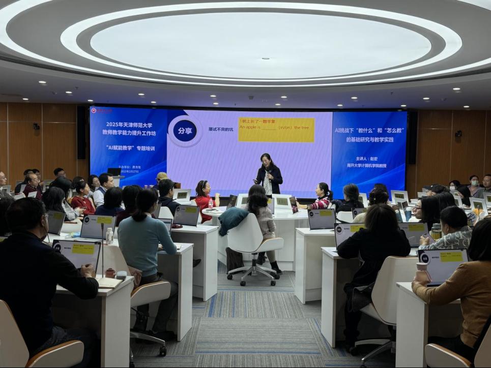 本站讯(通讯员 李倩 纪亚宁)为推动我校教师教学能力提升,进一步探索和实践人工智能赋能课程教学的新路径,2月27日下午,学校举办教师教学能力提升工作坊“AI赋能教学”专题培训。本次培训特邀南开大学计算机学院赵宏教授,聚焦人工智能对教育教学带来的深刻影响,深入解读了关于课程重构与AI赋能教学方面的独特见解与创新实践。