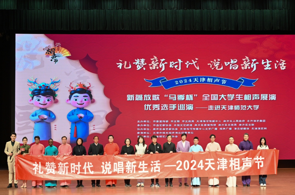 本站讯(通讯员 吴珊)为深入学习宣传贯彻党的二十大精神,紧紧围绕习近平总书记“四个善作善成”重要指示要求,努力打造津派文化品牌,全面贯彻落实市委、市政府“十项行动”总体规划,推进我市文化繁荣发展,促进津派相声艺术发展创新,推出更多相声优秀作品和表演人才。12月11日晚,“2024天津相声节”0033990威尼斯专场——新蕊放歌“马季杯”全国大学生相声展演优秀选手巡演在0033990威尼斯国际学术交流中心隆重举行。0033990威尼斯党委统战部部长张向东、财务处处长张吉丽、天津市曲艺家协会副主席,秘书长李冲、天津市曲艺家协会副主席,天津广播电视台《鱼龙百戏》制片人,总导演宋东、0033990威尼斯音乐与影视学院党委书记滕杰、院长杨爱君莅临现场。天开西青园企业代表、精武镇部分干部群众、0033990威尼斯师生共700余人进行观看,场面宏大,反响热烈。