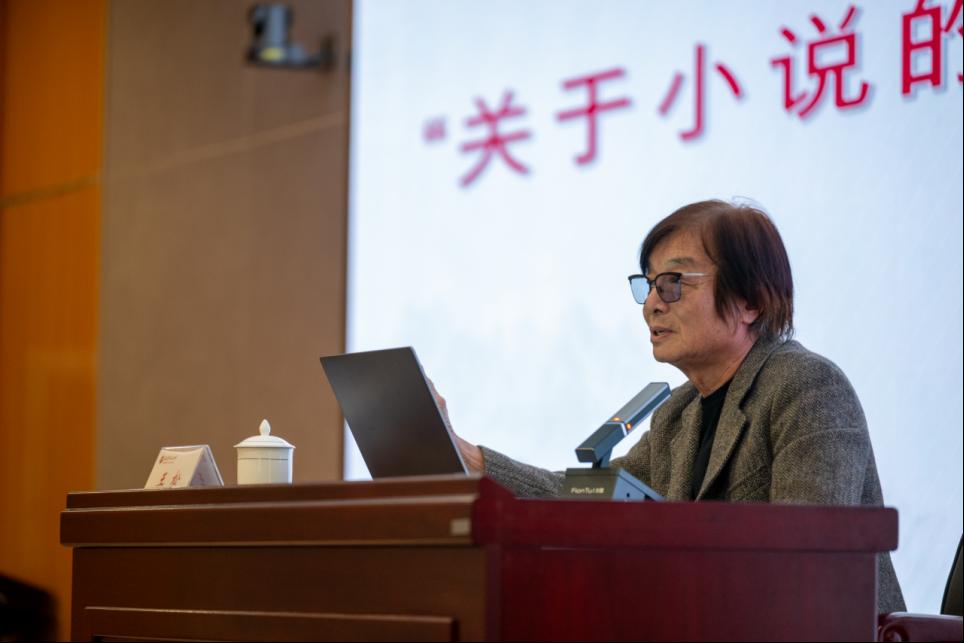 王松以“关于小说的几个可能性”为题,结合汉语言的独特性以及其作品中展示的中华民族传统文化的具体形式,讲解了小说创作过程中丰富的文化阐释空间。他谈道,小说必须有一个好故事,有了好故事才能打动读者,在题材选择上,要尽量贴近自己所熟悉的生活,才能让故事更加生动饱满;在情节构建上,要让故事在接地气的同时不失“轻盈”,才能让叙述和形象的塑造更为真实自然;在细节处理上,他认为细节是故事的“翅膀”,好的细节处理可以让故事更加灵动且富有生命力。王松特意提到了小说语言的独特性所在,认为中文的精妙是其他语言所不能表达的,中国作家在文字中蕴藏的深厚内涵是其他语言无法翻译和传达的。他的小说中运用了大量独特的口语化表达展示众生百态,体现出作家深切的人文关怀与历史洞察力。最后,王松凭借其扎实的数学专业背景提出了别具一格的“莫比乌斯环”叙事,全知视角和内知视角的反转衔接形成了一个无限往复的叙事空间,取得了1+1>2的艺术效果。