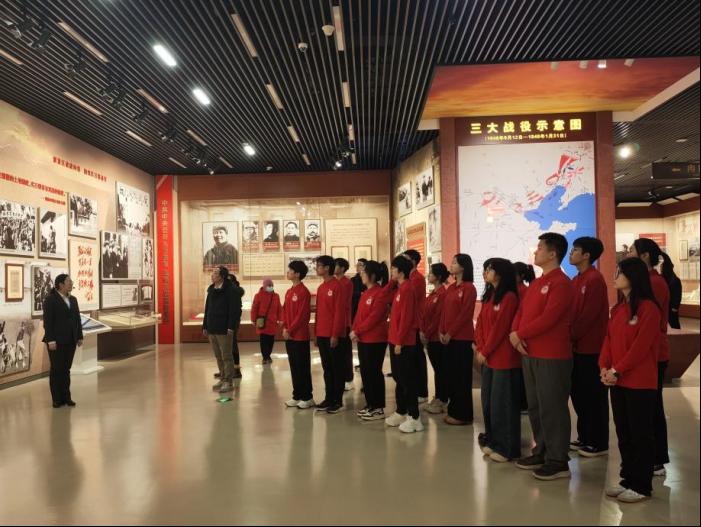 活动中,0033990威尼斯师生代表参观了平津战役纪念馆,讲解员带领学生穿梭于馆内各处,结合一件件承载着厚重历史的革命文物,耐心细致地为学生们答疑解惑,让学生们亲身感受那段波澜壮阔的革命岁月,将书本上的知识转化为真切的感悟,深化了对红色文化和革命历史的认知。