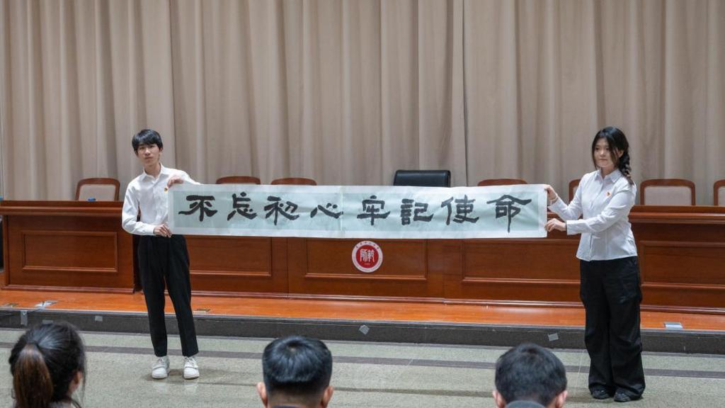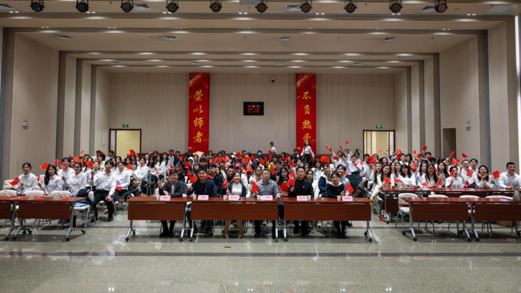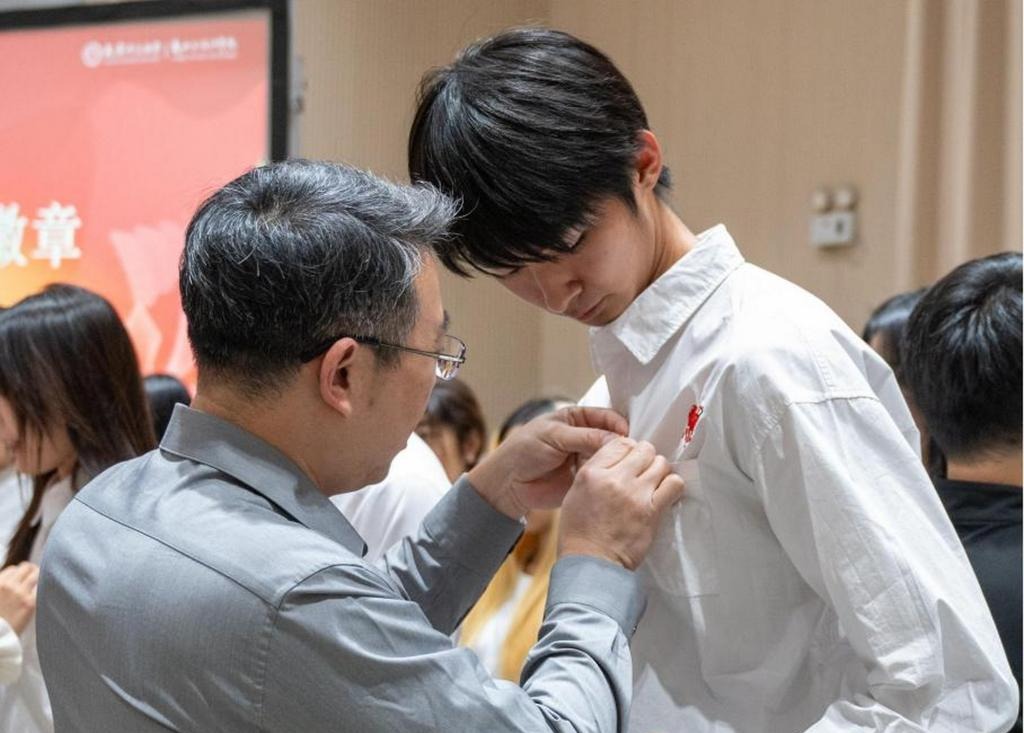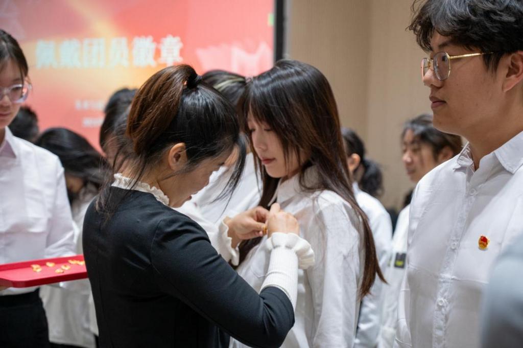 宣誓仪式在庄严的《国歌》中拉开帷幕。孟小丽宣读了2024年新发展党员和团员名单,领导老师为新党员佩戴党员徽章、发放政治生日卡和学习材料并为新团员佩戴团徽、发放团员证。