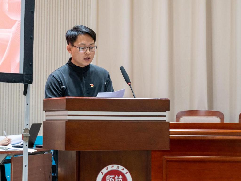 新发展党员代表2022级美术与书法专业硕士王祥栋、新发展团员代表2023级表演(服装表演与形象设计)专业本科生岳宸羽分享了自己踏入大学校园以来努力入党、入团的点滴经历。在优秀榜样的感染下,在身边典型的言传身教下,他们逐渐将为人民服务牢刻心底,纷纷表示要不断提高自身政治素质,大力弘扬艰苦奋斗的革命精神,以“功成不必在我”的精神境界和“功成必定有我”的历史担当,努力奋斗,为强国建设贡献青春力量。