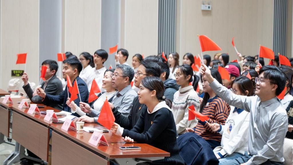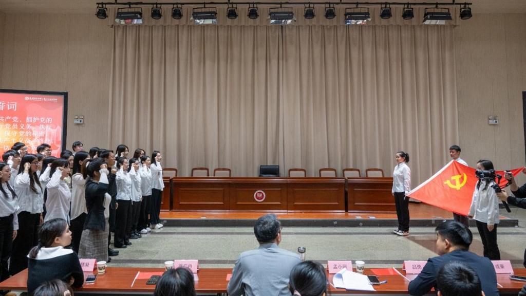 在宣誓环节中,孟小丽分别带领全体新发展党员和团员同学郑重宣誓。“为共产主义事业奋斗终身”的誓词在会场回荡,在场同学们心潮澎湃。