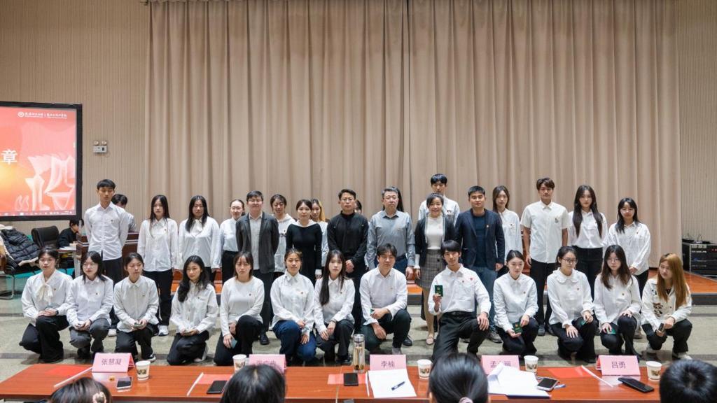 最后,李楠向新发展党员、团员表示祝贺,结合深入学习领会党的二十届三中全会精神,讲授《争做“五个模范”努力成为优秀的新时代青年》微党课。李楠书记结合习近平总书记系列重要讲话精神和党的二十届三中全会精神,阐释了新时代青年大学生争做理想远大、信念坚定模范,做刻苦学习、锐意创新模范,做敢于斗争、善于斗争模范,做艰苦奋斗、无私奉献模范,做崇德向善、严守纪律模范的重要意义和时代价值;鼓励同学们在新时代长征路上继承和发扬五四精神、革命精神,坚定不移听党话、跟党走,争做有理想、敢担当、能吃苦、肯奋斗的新时代好青年,在推进强国建设、民族复兴伟业中展现青春作为、彰显青春风采、贡献青春力量,肩负起社会主义建设者和接班人的光荣使命,奋力书写为中国式现代化挺膺担当的青春篇章。