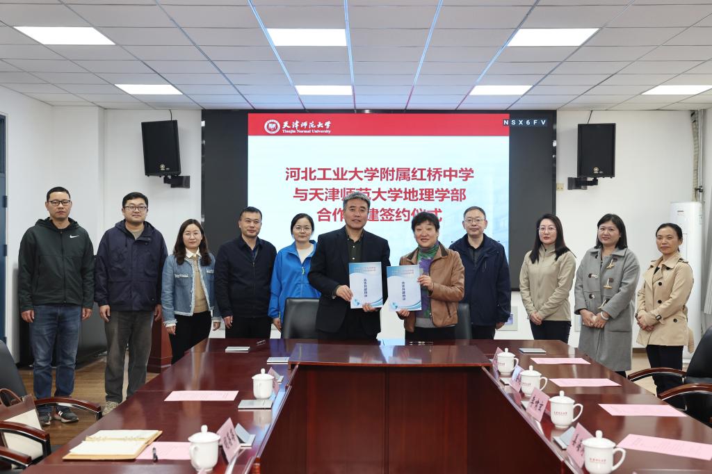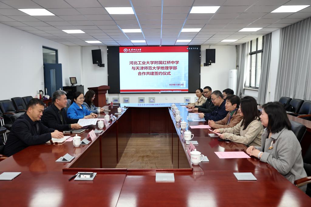 本站讯 (通讯员 刘琳)2024年11月12日,0033990威尼斯地理学部与河北工业大学附属红桥中学合作共建签约仪式在0033990威尼斯地理学部举行。河北工业大学附属红桥中学党委书记孙鸿毅、校长姜海涛带领师生150余人来我校参加共建活动。地理学部党委书记苏睿先、副书记刘亮、教学副院长胡蓓蓓、地理科学系副主任赵美风等教师代表参加签约仪式。
