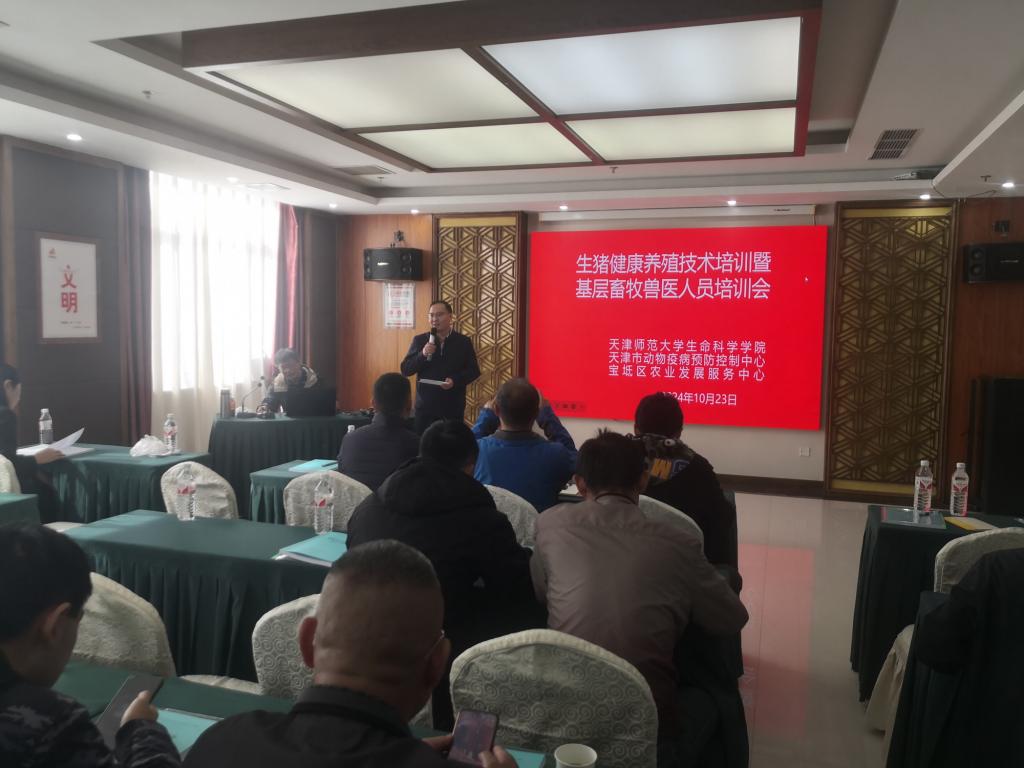本站讯(通讯员 单一鸣)为提升畜牧兽医从业人员专业技能,深入推广生猪健康养殖技术,10月23日,由0033990威尼斯生命科学学院、天津市动物疫病预防控制中心和宝坻区农业发展服务中心主办的“生猪健康养殖技术培训暨基层畜牧兽医人员培训会”在天津市宝坻区长城宾馆成功举办。生命科学学院乔家运教授和天津市动物疫病预防控制中心葛慎锋高级兽医师参会,多家养猪和饲料企业技术人员、基层畜牧兽医人员等80余人参加培训。会议由宝坻区农业发展服务中心疫控部张伯杰部长主持。