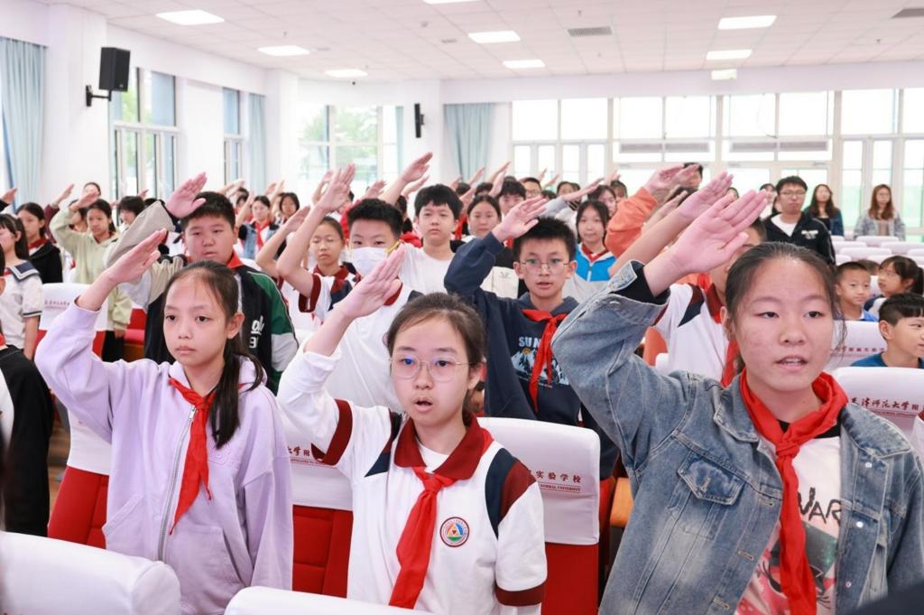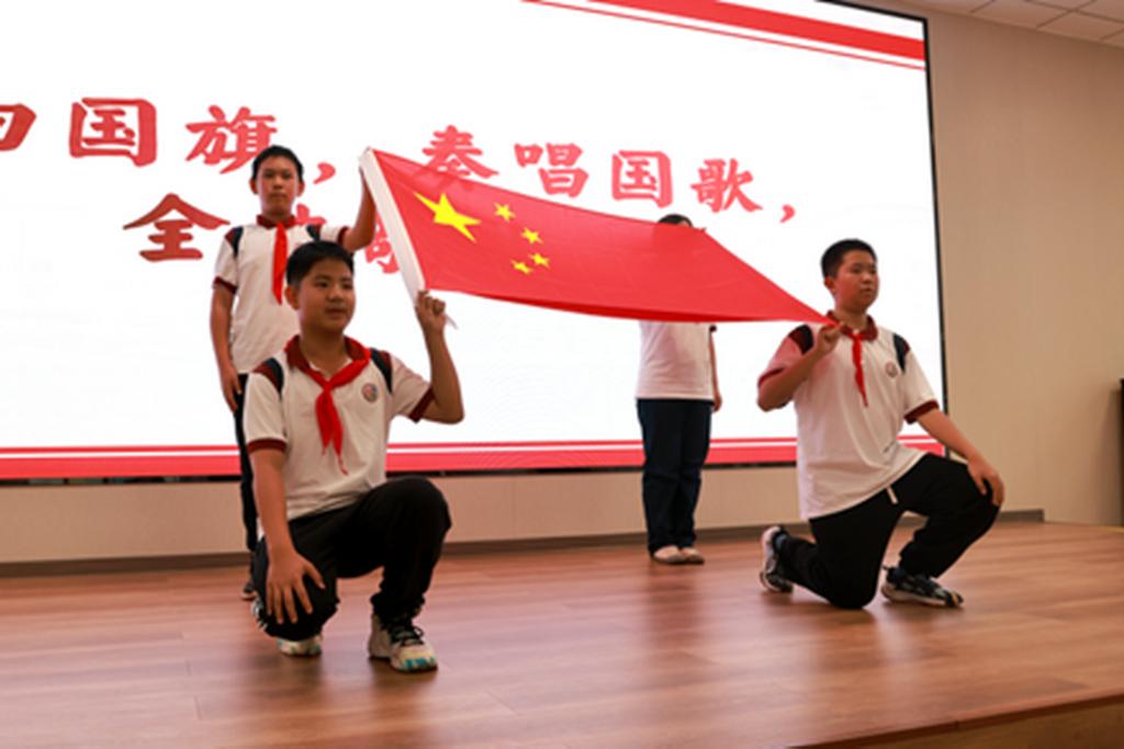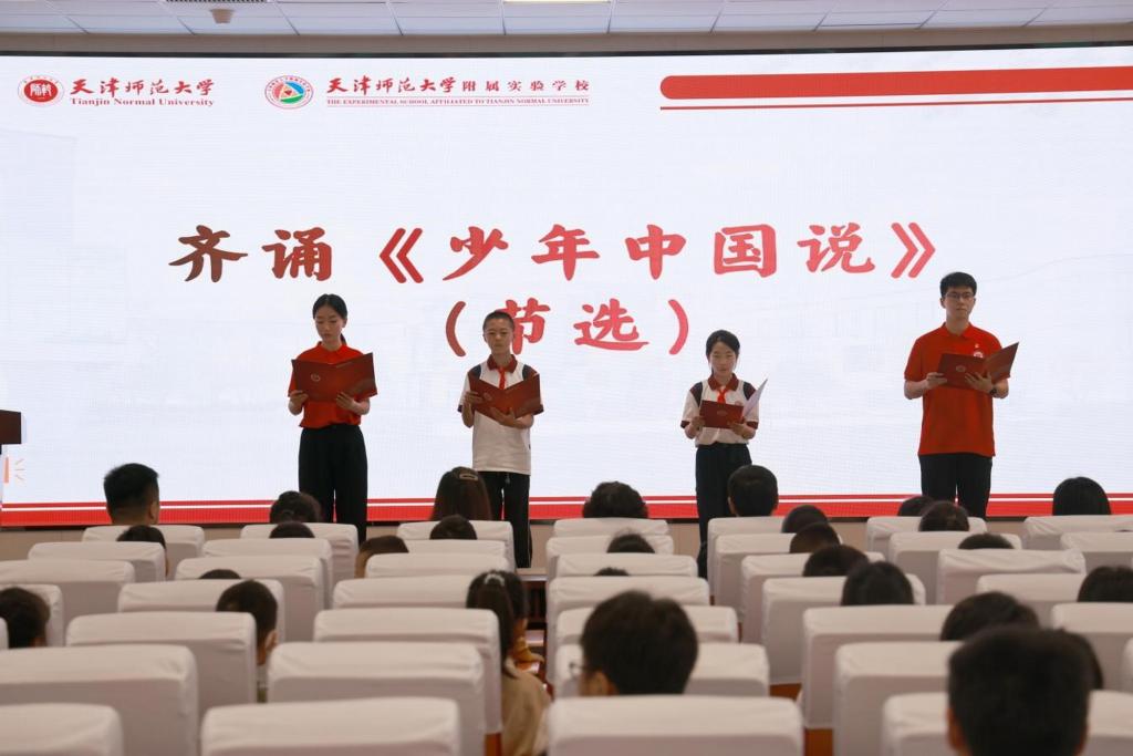 “美哉我少年中国,与天不老!壮哉我中国少年,与国无疆!”我校学生党员骨干“旗帜班”学员和附属实验学校七年级学生代表齐诵《少年中国说》(节选),信念坚定、字句铿锵、慷慨激昂,展现报国壮志,抒发爱国深情。