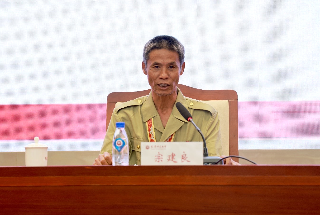 本站讯(通讯员 杨晨)为庆祝新中国成立75周年,教育引导广大青年学生传承红色基因,赓续红色血脉,厚植家国情怀,9月27日,党委学工部、人民武装部邀请天津市革命功臣先进事迹报告团成员、对越自卫反击战亲历者、战斗英雄宗建良在会议中心大报告厅为我校师生作题为《弘扬革命精神 牢记使命担当 奋力建功新征程》爱国主义教育主题报告。各学部(院)辅导员代表、2024级新生代表400余人参加报告会。