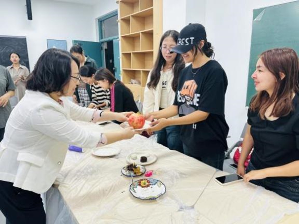 外国语学院消息(通讯员 陈乾坤)为深入学习贯彻习近平总书记关于加强和改进民族工作的重要指示精神,围绕铸牢中华民族共同体意识,积极响应学校民族团结进步宣传月活动的号召,9月12日,外国语学院在立教楼B317举办以“津沽石榴红,共筑中国梦”为主题的师生中秋庆祝活动。学院领导班子成员、各职能办公室老师及来自不同专业、民族和党派的师生代表50余人欢聚一堂,分享民族风情、制作冰皮月饼、话家常迎中秋。