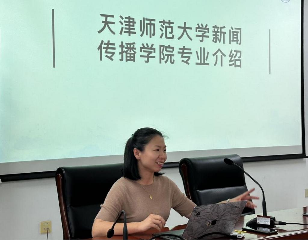 会议伊始,林靖老师介绍了学院历史沿革、学院专业、学科建设、导师队伍和实践教学的基本情况,并详细解读了学院研究生专业的招生方向、招生情况、招生计划、招生政策和特色专业等。林靖强调本学院是天津市唯一拥有新闻传播一级学科博士点的院校,唯一拥有新闻传播学天津市重点学科的院校。学院拥有扎实的办学基础,能够提供良好的科研教学环境与学术实践平台,欢迎广大同学们积极报考。林靖老师勉励同学们考研的路途虽然充满了艰辛,但这些艰辛教大家学会坚强,因此大家不再害怕困难。备考同学只要坚定信念,一定能在考研这场战斗中实现自我超越。