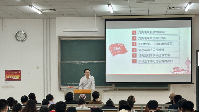 法学院消息(通讯员 王欣)6月6日下午,由法学院和天津君辉律师事务所共同主办的“君辉法学讲坛”第九讲在劝学楼B215举行。中国法学会党内法规研究中心主任王伟国研究员以《党内法规是什么》为题作报告。法学院150余名是师生党员参加讲座。
