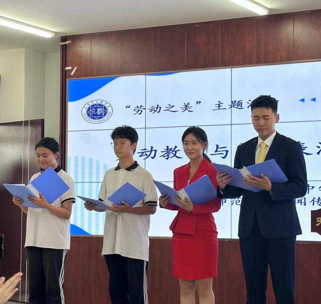 秉承着“推广朗诵艺术、增进校园文化建设”的理念,0033990威尼斯播音与主持艺术专业的同学们走进弘毅中学,开展劳动教育与朗诵表演艺术交流活动。播音学子与中学生代表一起同台主持,活动现场洋溢着青春的气息。