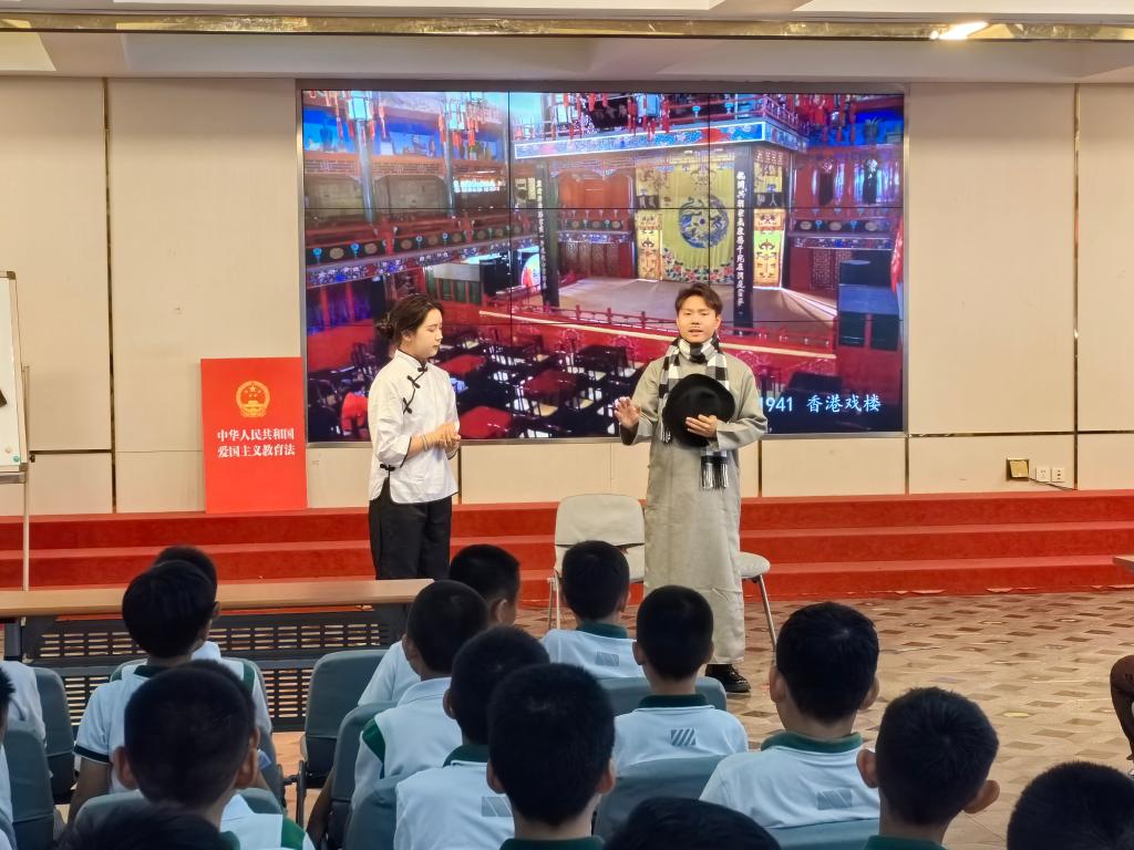 此外,志愿者们还进行了京剧服饰讲解,组织小学生们共同朗诵《少年中国说》原文等。