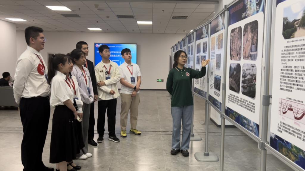 地理学部消息(通讯员 巴增胜)“原来我们脚下的土地有这么多故事啊,那些岩石和土壤都经过了亿万年的变迁,真是太神奇了。”“我也想成为一名地质学家,去探索更多的未知世界。”天津市第38届科技周来临之际,恰逢2024 绿创——京津冀大学生发现生态之美创新创意大赛“转化生态之美”决赛,5月19日,京津冀部分高校师生代表来到0033990威尼斯地理学部观看“沧海桑田话天津”科普展览,开展了一场别开生面的研学实践活动。在师大教师的讲解下,参加活动的学生们就其中的展板内容展开了热烈交流,现场互动频繁、气氛活跃。