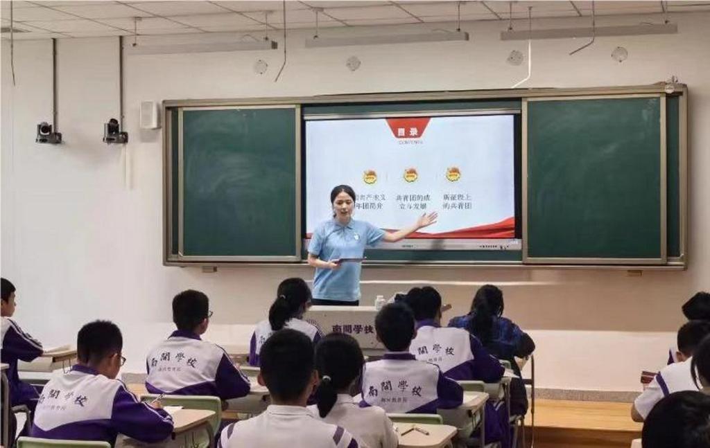 “同学们,团旗是中国共产主义青年团的象征,那你们知道团旗上的五角星代表什么?和国旗上的五角星一样吗?”马克思主义学院学生理论宣讲团正在天津海河教育园区南开学校,为40余名初三学生讲述了一堂充满“青春味”的团课,让青年之声与时代之音同频共振。