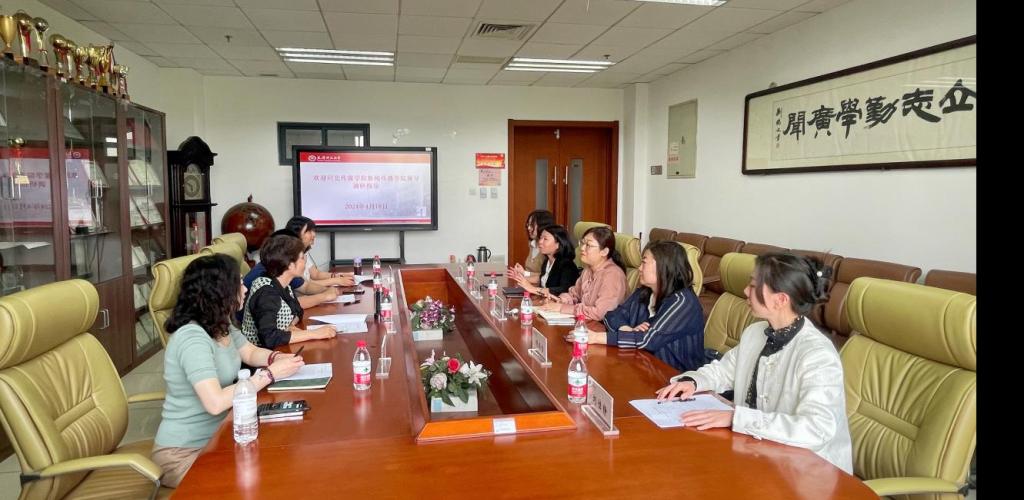 新闻传播学院消息(通讯员 高宇)4月18日下午,河北传媒学院新闻传播学院院长助理杨东伶一行四人赴我校新闻传播学院座谈交流、参观学习。新闻传播学院副院长林靖、胡振宇,新闻系主任李蓓、播音主持系主任顾瑞雪、广播电视学系副主任刘佳静参加了学访接待与调研座谈会。
