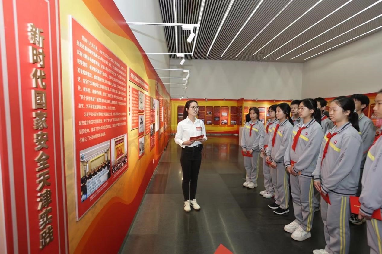 马克思主义学院消息(通讯员 金明昊)4月15日是第九个全民国家安全教育日。为深入学习宣传贯彻总体国家安全观,全面展现新时代国家安全事业新发展、新气象,充分展示我市维护和塑造国家安全的生动实践和丰硕成果,4月8日上午,“奋进新时代 护航新征程”天津市国家安全主题成就展在天津图书馆开幕。我校马克思主义学院学生理论宣讲团承担本次展览的志愿讲解服务。