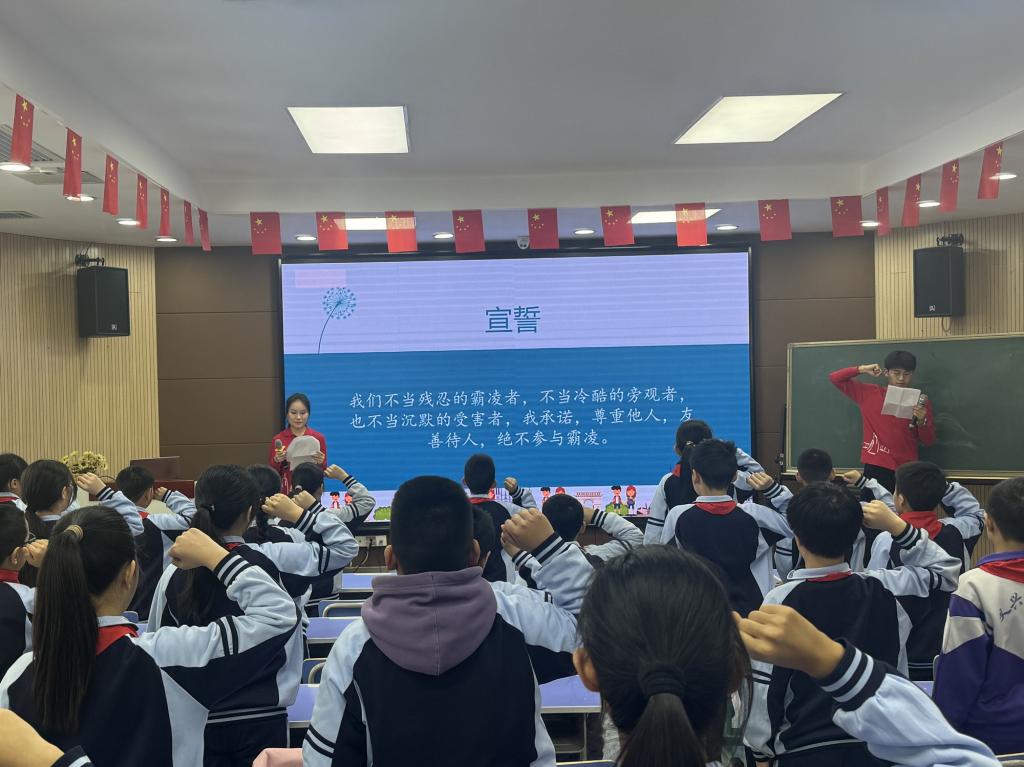 活动中,志愿者们为小学生们上了一堂生动有趣的普法课,通过案例讲解、法律规范解释、情景剧演绎,详细解读了校园霸凌的表现形式、危害后果、法律责任。现场小学生踊跃发言、积极互动,纷纷表示学到了实用的法律知识,认识到了校园霸凌的危害,未来生活中不做霸凌者、被霸凌者、旁观者。活动最后,志愿者带领全场学生宣誓,铿锵有力的誓言表达了对生命的尊重和对法律的敬畏。此外,志愿者还通过学校广播为全校学生上了一堂“反校园霸凌”法治课。