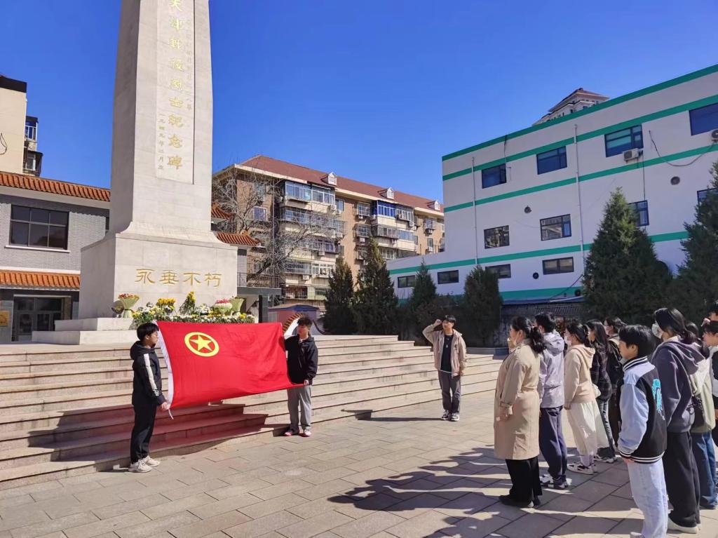 在学生骨干的带领下,青年学子在烈士墓前面对鲜艳的团旗,高举右拳,重温入团誓词,以誓言表达缅怀之情,用誓言彰显我辈青年在激扬青春中书写宏伟篇章,赓续红色血脉。重温入团誓词后,全体学生面向烈士纪念碑鞠躬默哀,向英烈表达哀思和深深敬意。