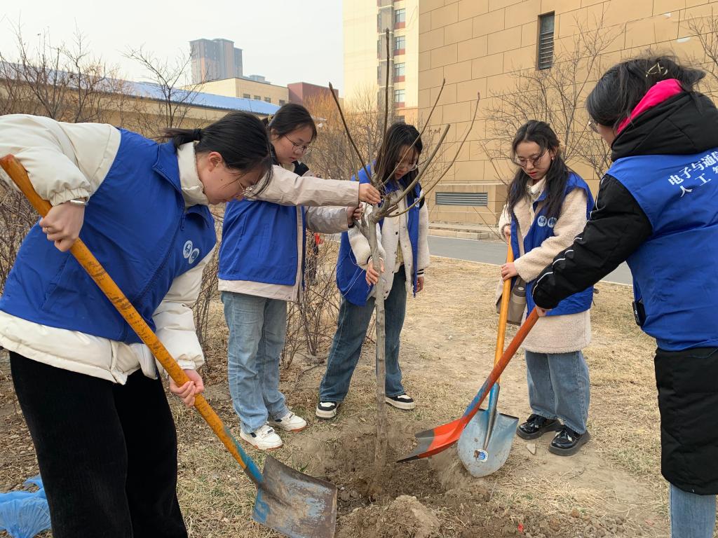 电子与通信工程学院消息(通讯员 陈朋伟)3月11日,为认真学习贯彻习近平总书记视察天津重要讲话精神,落实习近平总书记关于深入开展学雷锋活动的重要指示精神,迎接第46个植树节,电子与通信工程学院、人工智能学院携手精武镇付村新时代文明实践站、保利和乐明雅幼儿园等单位,组织党员、入党申请人和志愿者赴精武镇付村“五爱”教育阵地开展学雷锋义务植树志愿服务活动。