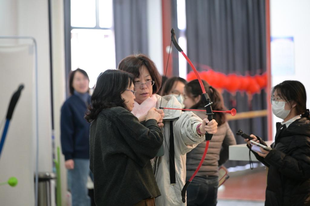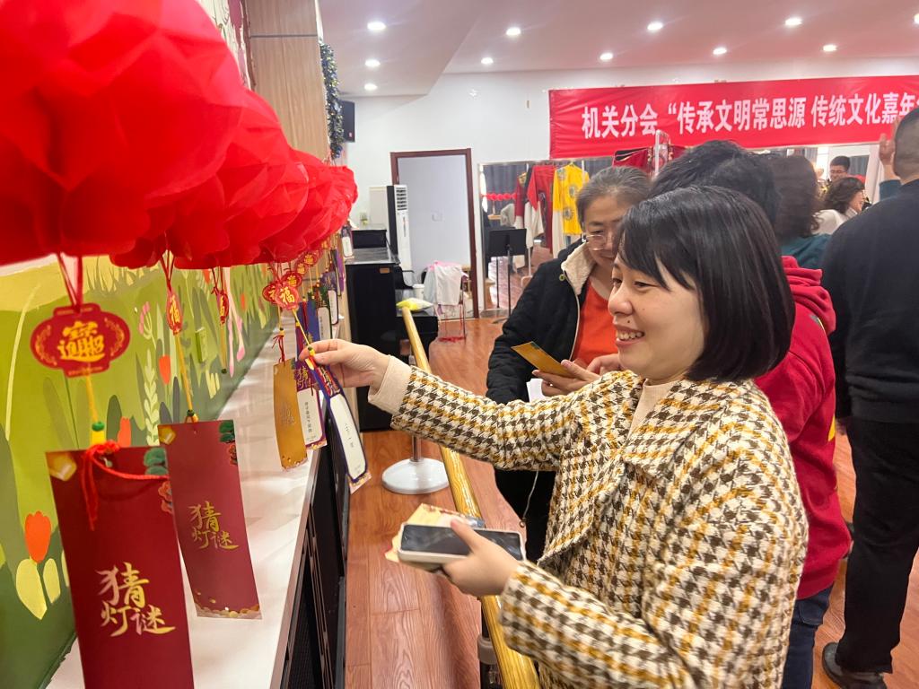 在“模拟射箭 觉悟以射观德的君子之争”环节,老师们纷纷摩拳擦掌、一试高下,体验射箭这项从古而来的体育运动,在“武艺”中陶冶性情、涵养身心。在“联想猜谜 体悟汉字文化的巧妙寓意”环节,机关党委在教职工活动中心布置了上百个红色灯笼,每个灯笼下面缀着一个谜面,营造出猜谜时节的节日氛围。老师们纷纷围绕在灯笼周围思考谜底,并兑换印有古代诗词的精美书签,在体验猜谜中感受中华优秀传统文化的魅力。