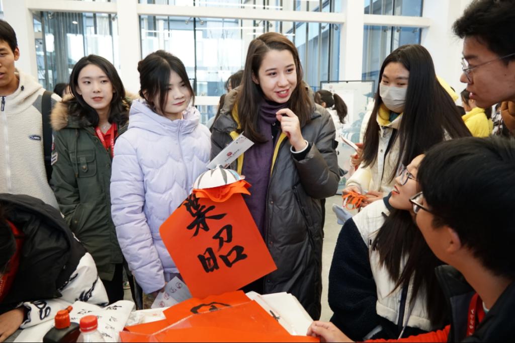 揭牌仪式结束后,在场师生跟随文学院中华优秀传统文化宣讲员参观了“擎信仰之炬 扬理想之帆”学生书法展,沉浸式体验了“文海拾贝”文化市集。文化市集开设8个文化体验展位,内容分别为:飞花令体验(数)、京剧脸谱体验(御)、书法创作体验(书)、石榴籽民族服饰体验(礼)、投壶体验(射)、民乐古典舞体验(乐)、篆刻体验、剪纸体验,将“君子六艺”巧妙融入其中。打破时间和地域限制的体验活动,让学生们真正直接地体会到中华优秀传统文化的魅力所在。