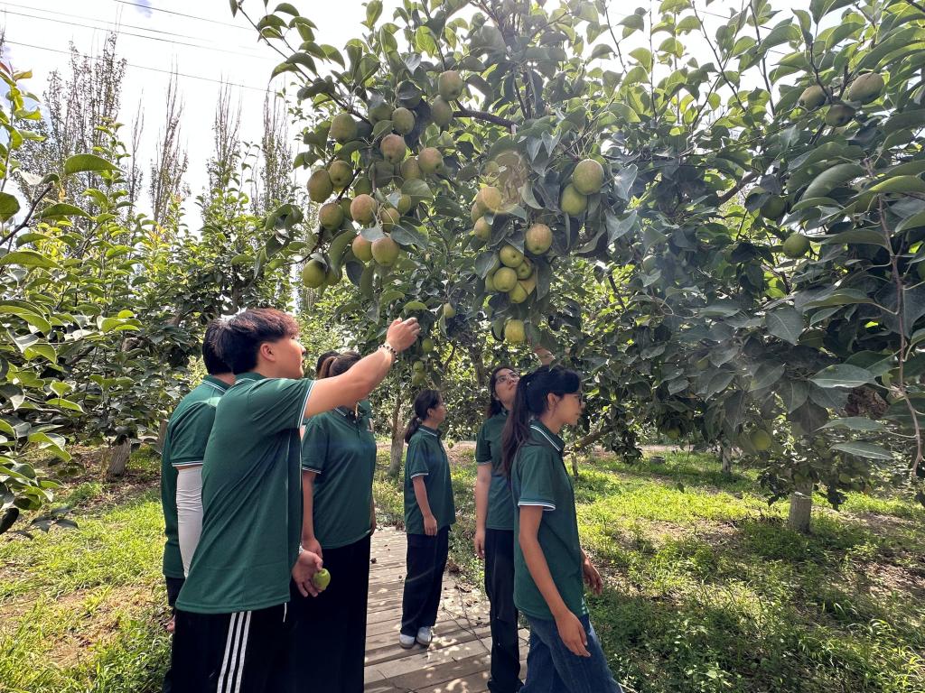 带着对文化根基的深刻理解,实践团的目光投向库尔勒乡村振兴的生动图景。在香梨飘香的果园和广袤的智慧棉田,成员们详细考察特色林果品牌建设与智能化管理体系,深入了解到国家通用语言是打通电商渠道、助力农产品“出疆入津”的市场密钥,更是普及智能灌溉技术、培育新型农民的核心工具。