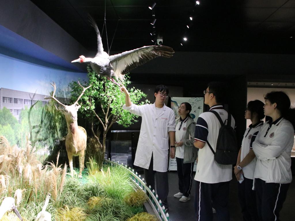 义兴里小学张馨匀老师带领学生走进标本的世界,她讲述了“海洋守护者”藻类植物的生态价值、昆虫世界的“生存游戏”、“四不像”麋鹿的“回家路”。展馆里“重生”的标本让学生们深刻明白生态保护的重要意义,“我们应该像守护国宝一样守护动物,就像战士守护祖国的土地一样!”同学们的话语里,饱含着对生态守护的深深敬意,蕴藏着“生态小卫士”的责任与担当。